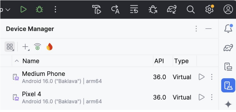 - Nachdem das AVD erstellt wurde, kann der AVD-Manager geschlossen werden. Für zukünftige Änderungen am AVD, öffnen Sie einfach den AVD-Manager erneut.