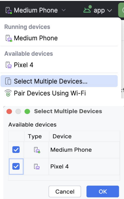 AVDs sind im Wesentlichen Emulatoren, mit denen Android-Anwendungen getestet werden können, ohne dass die Anwendung auf einem physischen Android-basierten Gerät installiert werden muss. Ein AVD kann so konfiguriert werden, dass es eine Vielzahl von Hardwarefunktionen emuliert, einschließlich Optionen wie Bildschirmgröße, Speicherkapazität und das Vorhandensein oder nicht Vorhandensein von Funktionen wie einer Kamera, GPS-Navigationsunterstützung oder eines Beschleunigungsmessers. Im Rahmen der Standardinstallation von Android Studio werden eine Reihe von Emulator-Vorlagen installiert, mit denen AVDs für eine Reihe verschiedener Geräte konfiguriert werden können. Benutzerdefinierte Konfigurationen können erstellt werden, um jedem physischen Android-Gerät zu entsprechen, indem Eigenschaften wie Prozessortyp, Speicherkapazität, sowie Größe und Pixeldichte des Bildschirms angegeben werden.