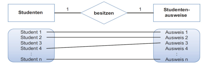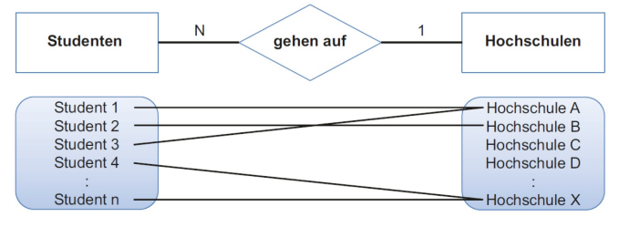 1: Ein Student kann auf höchstens eine Hochschule gehen. N: Auf eine Hochschule gehen viele Studenten.