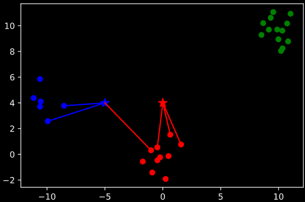 KNN ist ein Classifier Algorithmus, der zu einem zu klassifizierenden Datenpunkt die k nächsten Nachbarn bestimmt. K ist dabei eine Variable, die frei wählbar ist. Zum Beispiel könnte k=3 sein. Damit würden zu einem Datenpunkt die nächsten 3 Punkte bestimmt.