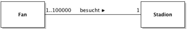 Multiplizitäten geben an wie viele Objekte der Klassen es geben kann/muss.