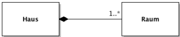 Wenn die Teile nicht unabhängig vom Ganzen existieren können, handelt es sich um eine Komposition. Kompositionen werden mit einer ausgefüllten Raute gekennzeichnet.