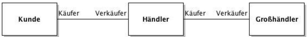 Ganzes-Teil-Beziehungen kennzeichnet mit einer Raute auf der Ganzes-Seite.