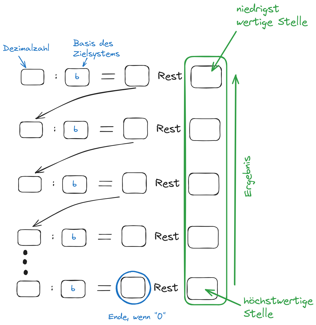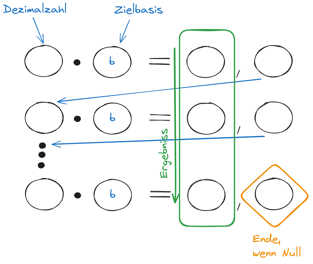 Umrechnung von Dezimalzahlen >1 (Ganzzahl) in ein beliebiges Zahlensystem